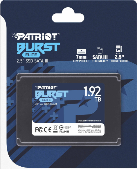 Твердотельный SATA-накопитель Patriot имеет объем 1920 Гб и выполнен в форм-факторе 2.5''. Данный накопитель разработан на основе технологии TLC 3D NAND и подходит для высокоскоростных вычислительных систем.