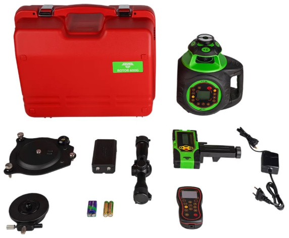 Ротационный лазерный нивелир AMO ROTOR 600G с зеленым лучом превосходит по функционалу предложения от именитых брендов и может предложить уникальные возможности, которых нет у конкурентов. Диаметр рабочей зоны составляет 600 метров при точности луча ±0,05 мм/м. Приемник лазерного излучения включен в комплект.