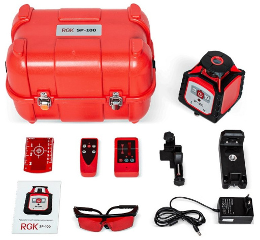 Ротационный нивелир RGK SP 100 — профессиональный измерительный прибор для построения горизонтальных и вертикальных плоскостей на строительных площадках и в помещениях. Прибор предназначен для точной разметки и выравнивания поверхностей на больших расстояниях, обеспечивая высокую точность работ при строительстве и ремонте.