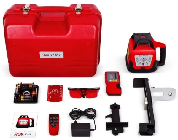 Лазерный нивелир RGK SP-610 вместе с приемником сигнала работает на расстоянии 300 м, что позволяет использовать данное оборудование на крупных строительных площадках и в сфере ландшафтного дизайна. Отклонение от горизонта на +/- 5 градуса легко и быстро устраняется при помощи компенсационной системы. Переменная частота вращения (0/60/120/300/600 об/мин) дает возможность использовать прибор максимально эффективно. Корпус модели соответствует стандарту IP64 и защищает внутренние узлы от таких негативных факторов, как пыль и влага.