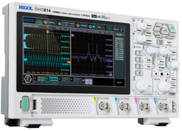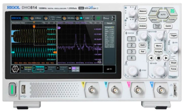 Rigol DHO814 — цифровой осциллограф высокого разрешения, который объединяет в одном корпусе четырёхканальный осциллограф и анализатор протокола.