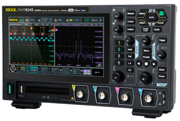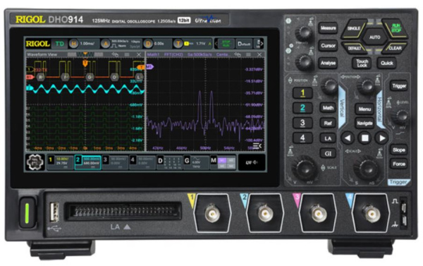Rigol DHO914 — цифровой осциллограф высокого разрешения, который может объединять в одном корпусе четырёхканальный цифровой осциллограф, 16-канальный логический анализатор и анализатор протокола.