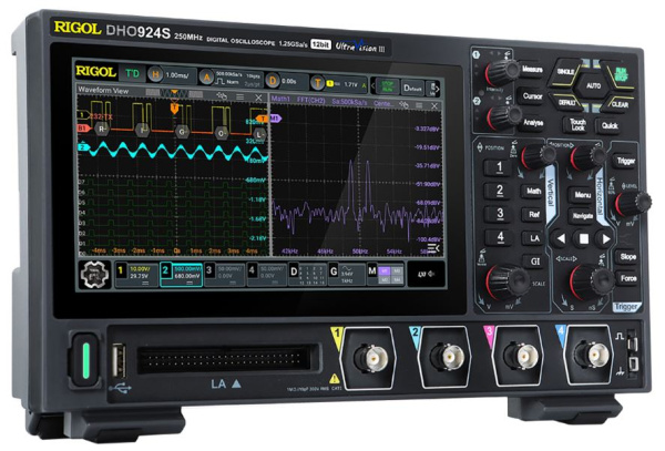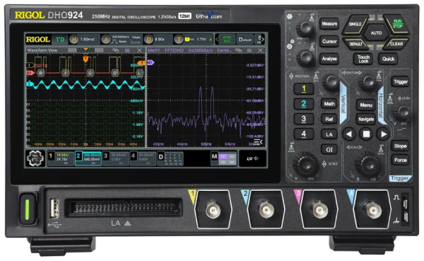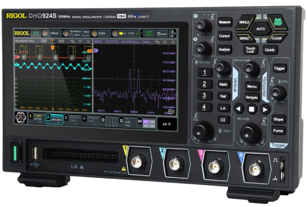 Rigol DHO924 — цифровой осциллограф высокого разрешения, который может объединять в одном корпусе четырёхканальный осциллограф, 16-канальный логический анализатор и анализатор протокола.