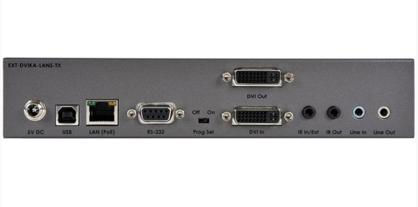 EXT-UHDKA-LANS-TX – передатчик сигналов HDMI, USB (тип B), RS-232, а также двунаправленных сигналов стереоаудио и ИК по IP-сетям 1000BaseT, который передает высококачественный видео- и аудиосигнал по стандартным линиям категории 5е, 6.