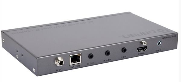 EXT-UHD-LANS-TX – передатчик сигналов HDMI, двунаправленных ИК сигналов. Используется в небольших помещениях и на больших закрытых площадках.