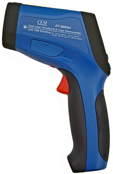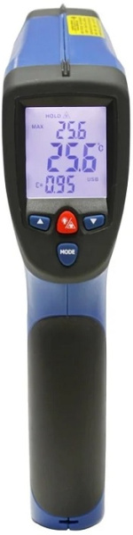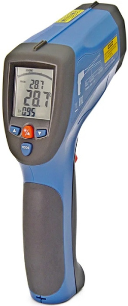 Профессиональный инфракрасный термометр служит для замера температуры поверхности объектов ЖКХ, энергетики, городского хозяйства, автотранспорта. Память на 100 показаний позволяет сохранять данные замеров для последующего анализа и составления отчетных документов. Излучающая способность термометра регулируется в диапазоне от 0.1 до 1. Время отклика прибора составляет всего 0.15 секунды. Есть возможность вести непрерывное измерение температуры в режиме мониторинга.