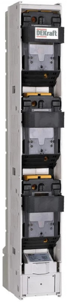 Предохранитель-выключатель-разъединитель вертикальный (ПВР-101) предназначен для включения и отключения нагрузки с видимым разрывом в сетях трехфазного переменного тока до 250 А частотой 50/60 Гц и номинальным напряжением до 690 В. Пофазное отключение, монтаж на шины.