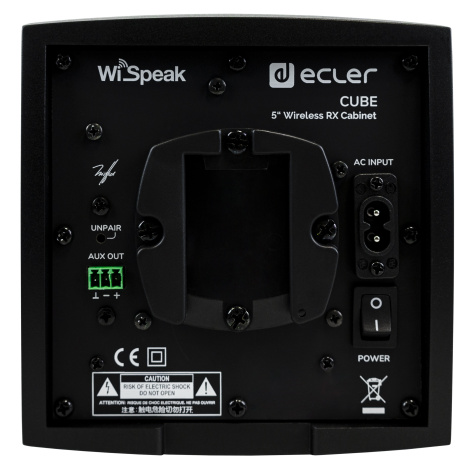 ECLER CUBE (black) – 2-полосная акустическая система приемник беспроводной аудиосистемы системы WiSpeak, предназначенная для построения радиоканальных систем озвучивания, оповещения и конференц-связи. Она оборудована 5" НЧ вуфером и 1 " ВЧ твитером, которые обеспечивают мощность на уровне 32 Вт и чувствительность 83 дБ в частотном спектре 70 Гц – 20 кГц. Сигналы управления и аудио получает от передатчика CORE по радиоканалу. При этом расстояние между приборами не должно превышать 12 м (в условиях прямой видимости).