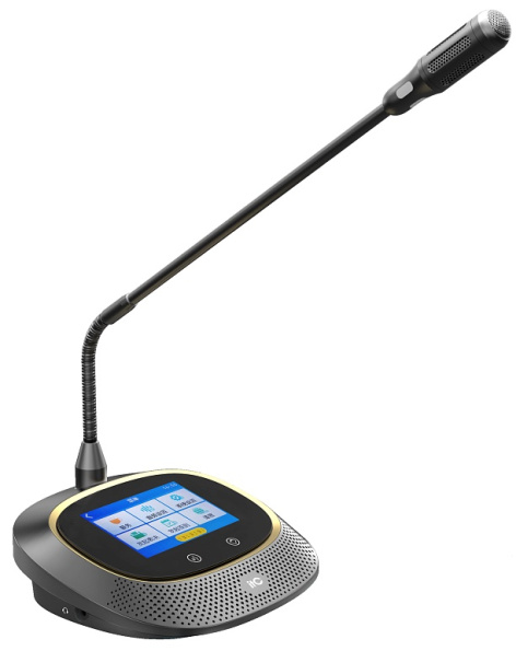 TS-0309 - микрофон председателя с сенсорным экраном. Применяется технология передачи несжатого звука, частота дискретизации 48К, полоса пропускания 80 Гц и 16 КГц, что позволяет добиться отличного качества звука. Встроенный независимый веб-сервер. Устройство поддерживает переключение четырех языков, настройку идентификационного номера микрофона, чувствительности микрофона, эквалайзера и других параметров. Подключение микрофонов осуществляется через интерфейс RJ45. Используется ёмкостная сенсорная кнопка, которая не производит посторонних звуков при нажатии. Поддержка функции голосования, есть несколько режимов голосования, содержимое опций можно настроить и отправить на пульт для отображения.
