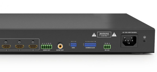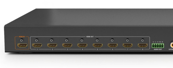 WyreStorm SP-618 – это HDMI-разветвитель универсального назначения: от цифровых вывесок до розничной торговли или гостиничного бизнеса. Каждый выход HDMI SP-618 имеет масштабатор с понижением разрешения от 4K до 1080p, что позволяет одновременно использовать несколько дисплеев со смешанным разрешением. Балансный аналоговый и цифровой аудиосигнал S/PDIF с деэмбедированием позволяет легко подключать внешние усилители или DSP. SP-618 может быть легко установлен в стандартные 19-дюймовые реки благодаря корпусу высотой 1U.