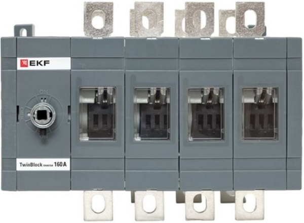 Реверсивные рубильники серии TwinBlock предназначены для переключения нагрузки на резервную линию с разрывом питания (индикация положений на рубильнике I-0-II). Электрические характеристики реверсивных рубильников серии TwinBlock позволяют выполнять переключение под нагрузкой между двумя источниками питания, даже при токах с высокой индуктивной составляющей и пусковых токах двигателей.