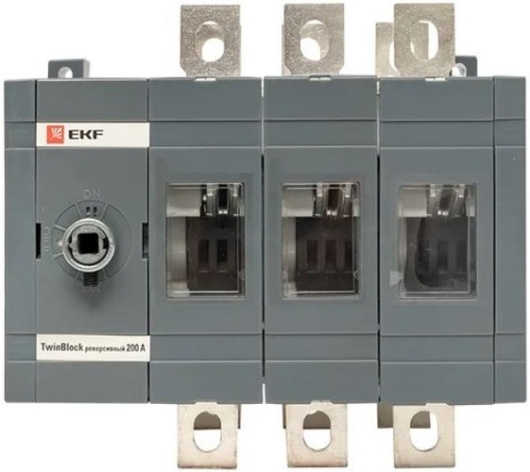 Реверсивные рубильники серии TwinBlock предназначены для переключения нагрузки на резервную линию с разрывом питания (индикация положений на рубильнике I-0-II). Электрические характеристики реверсивных рубильников серии TwinBlock позволяют выполнять переключение под нагрузкой между двумя источниками питания, даже при токах с высокой индуктивной составляющей и пусковых токах двигателей.