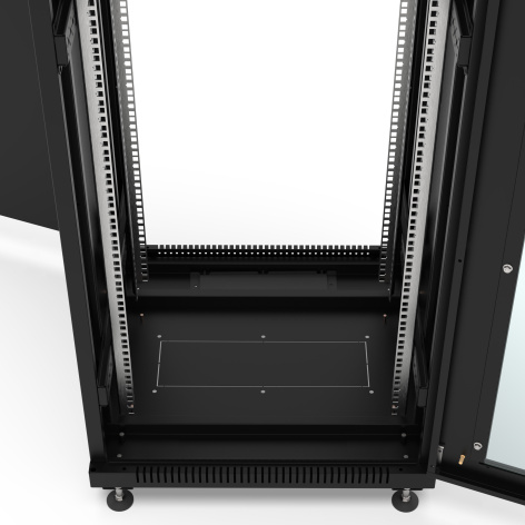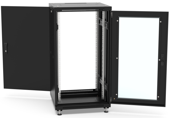 Напольный шкаф серии "NETWORK" предназначен для размещения активного и пассивного телекоммуникационного IT оборудования, стандарт 19 дюймов (19"). Статическая нагрузка - до 800 кг. Предназначен для использования внутри помещений. Передняя дверь стеклянная в металлической раме, задняя - цельнометаллическая. Обе двери оснащены поворотными ручками с замком. Двери можно навесить как с левой, так и с правой стороны, тем самым обеспечивая удобство эксплуатации в тесных помещениях. Угол открытия двери более 180 градусов. Шкаф укомплектован съемными боковыми панелями. Каждая панель оснащена замком и пластиковыми защелками. Для ввода кабелей, в крыше и дне шкафы предусмотрены щеточные кабельные вводы (идут в комплекте, 2 шт). В крышу шкафа возможно установить вентиляторный модуль на 2 или 4 вентилятора. В комплекте поставки имеются регулируемые ножки. Возможна установка транспортировочных роликов (заказываются отдельно). Шкаф поставляется в разобранном виде.