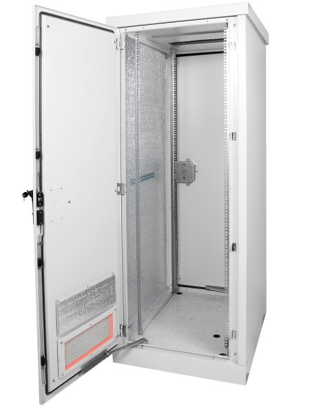 Шкаф ШТВ-1 состоит из телекоммуникационного отсека, который может быть разделен на 2 (снизу – аккумуляторный) при помощи дополнительной полки (в комплект поставки не входит). Передняя дверь имеет жалюзи для обеспечения вентиляции. Крыша шкафа съёмная, имеет небольшой уклон и систему «антикапля», что не позволяет воде скапливаться на шкафу и отводит воду без попадания её на уплотнитель шкафа – дверь не примерзает в холодный период года.