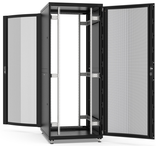 Напольный шкаф серии "NETWORK" предназначен для размещения активного и пассивного телекоммуникационного IT оборудования, стандарт 19 дюймов (19"). Статическая нагрузка - до 800 кг. Предназначен для использования внутри помещений. Передняя и задняя двери перфорированные. Обе двери оснащены поворотными ручками с замком. Двери можно навесить как с левой, так и с правой стороны, тем самым обеспечивая удобство эксплуатации в тесных помещениях. Угол открытия двери более 180 градусов. Шкаф укомплектован съемными боковыми панелями. Каждая панель оснащена замком и пластиковыми защелками. Для ввода кабелей, в крыше и дне шкафы предусмотрены щеточные кабельные вводы (идут в комплекте, 2 шт). В крышу шкафа и дно возможно установить вентиляторный модуль на 2, 4 или 6 вентиляторов. В комплекте поставки имеются регулируемые ножки. Возможна установка транспортировочных роликов (заказываются отдельно). Шкаф поставляется в разобранном виде.