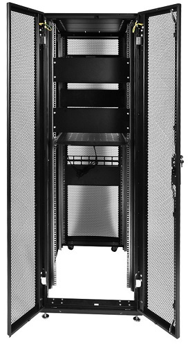 Напольный шкаф для размещения оборудования в серверных помещениях и центрах обработки данных. Шкаф имеет две массивные сварные рамы, соединенные комплектом швеллеров, что обеспечивает повышенную жесткость конструкции.