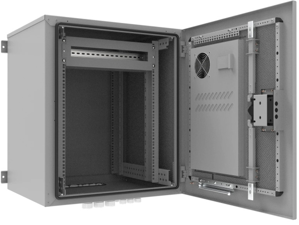 Настенный шкаф SNR-OWC-186060-500-AC размером 19 дюймов и высотой 18U предназначен для размещения серверного и сетевого оборудования.