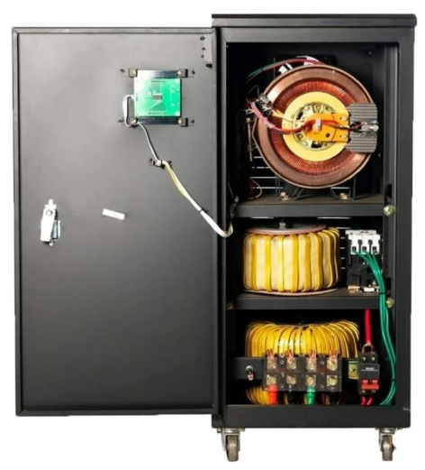 Однофазный электромеханический стабилизатор предназначен для выравнивания напряжения сети. Предусмотрена входная и выходная фильтрация сетевых помех.