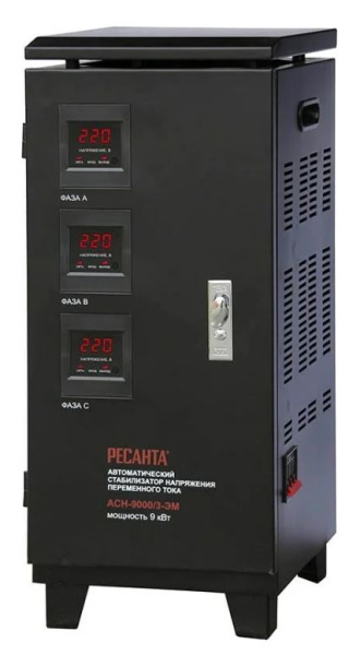 Трехфазный стабилизатор напряжения Ресанта АСН-9000/3-ЭМ предназначен для обеспечения качественного электропитания и долгой работы различных бытовых устройств в условиях нестабильного напряжения в сети.