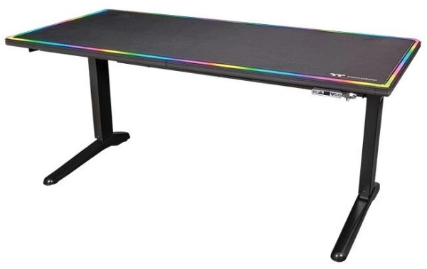 Level 20 BattleStation RGB - это игровой стол Thermaltake с электрической регулировкой высоты. Поверхность столешницы представляет собой игровую поверхность на которой отлично работают игровые мыши с различным типом сенсора. Кроме того, по ее периметру имеется светодиодная RGB подсветка на 16,8 млн. цветов с программным управлением, которую можно синхронизировать с другими продуктами серии TT RGB PLUS через iTAKE. Благодаря своим большим размерам на стол можно устанавливать несколько мониторов. Вместе с игровым столом Level 20 BattleStation RGB вы можете повысить уровень вашего игрового опыта!