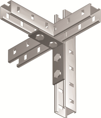 Элементы системы «B5 Combitech» легко комбинируются друг с другом, что позволяет создавать конструкции любой сложности и строить проекты нестандартных размеров. При этом обычно применяются соединения болтового типа. Аксессуары могут иметь различные исполнения. Изделия в специальном исполнении «Горячий цинк» отличаются длительным сроком службы и высокой устойчивостью к коррозии. Двойной крепежный уголок используется для того, чтобы создавать сложные конструкции на основе С-образных профилей, соединенных между собой. Толщина стали — 6 мм.