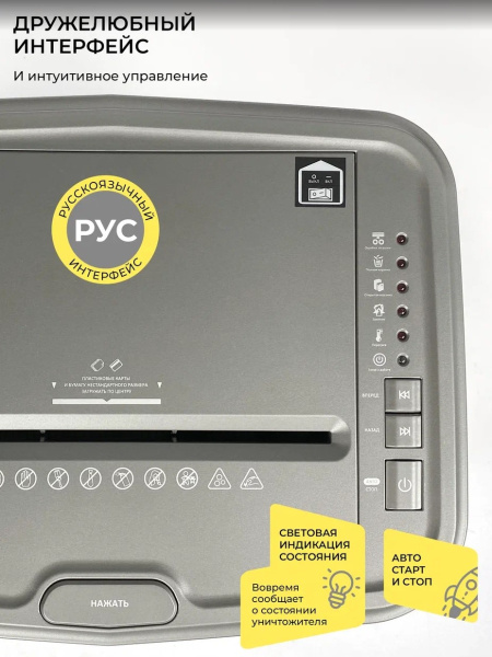 Приемная корзина обеспечит удобство при наполнении отработанного материала, а подробная индикация поможет разобраться в режимах работы.