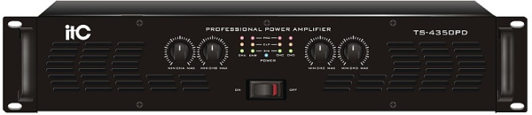 ITC TS-4500PD - профессиональный стерео усилитель класса D, встроенный лимитер и высокочастотный фильтр имеет 4 по 350W, 8 Ом, или 4 по 500W, 4 Ом, или 2х1000W в режиме моста 8 Ом выходы.