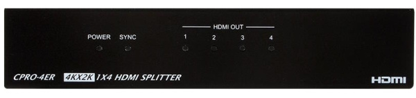 CPRO-4ER – усилитель-распределитель 1:4 сигналов HDMI разрешением до 4K2K с поддержкой 3D. Распределяет сигнал, полученный с одного входа, на 4 синхронизированных выхода HDMI. Поддерживаются разрешения до 3840x2160/30 и 4096x2160/24, 1080p60 с Deep Color при 12-разрядной глубине кодирования цвета, эмбедированное многоканальное аудио. Пропускная способность – 9 Гбит/с. Возможность выбора источника EDID-блока.