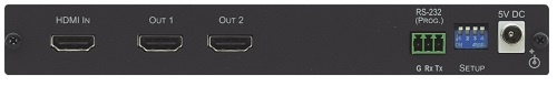 Усилитель-распределитель 1:2 сигналов HDMI 2.0 с поддержкой разрешения до 4К, 60 Гц, (4:4:4). Прибор производит перетактирование входного сигнала HDMI и компенсацию АЧХ кабеля, после чего распределяет его на два идентичных выхода. VM-2H2 поддерживает HDCP 2.2