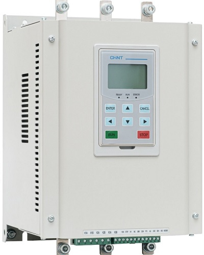 Устройство плавного пуска используется для управления электродвигателями мощностью до 110 кВт при токе 220 А. Оно обеспечивает мягкий запуск, снижая пусковые токи и защищая оборудование от перегрузок.